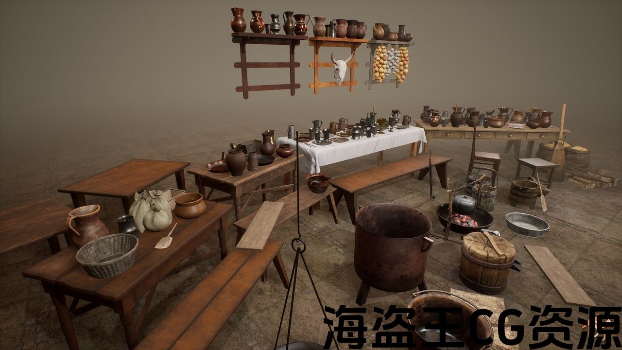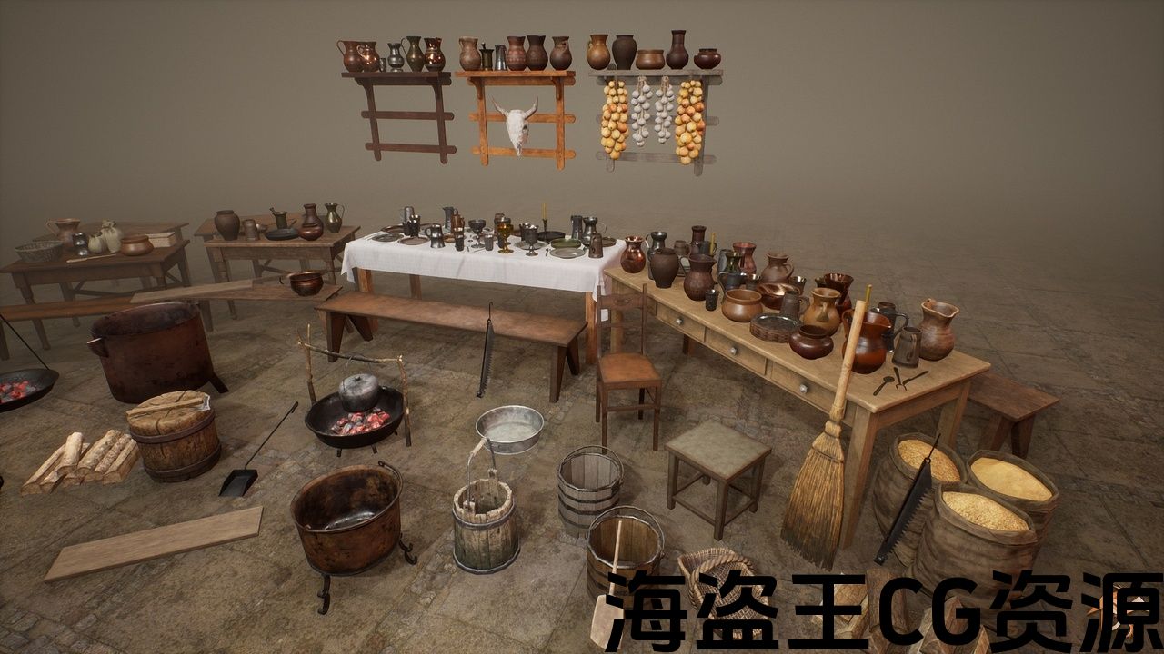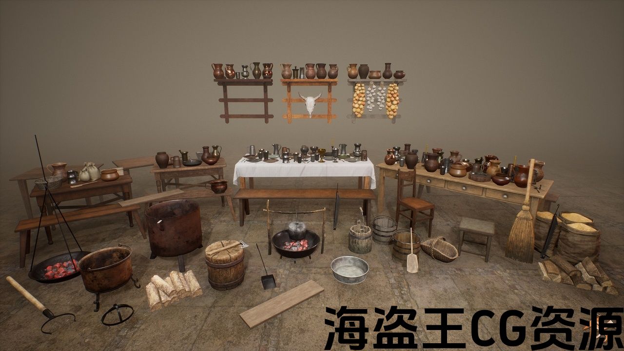 中世纪厨房和餐厅套件 (73款独特型号).