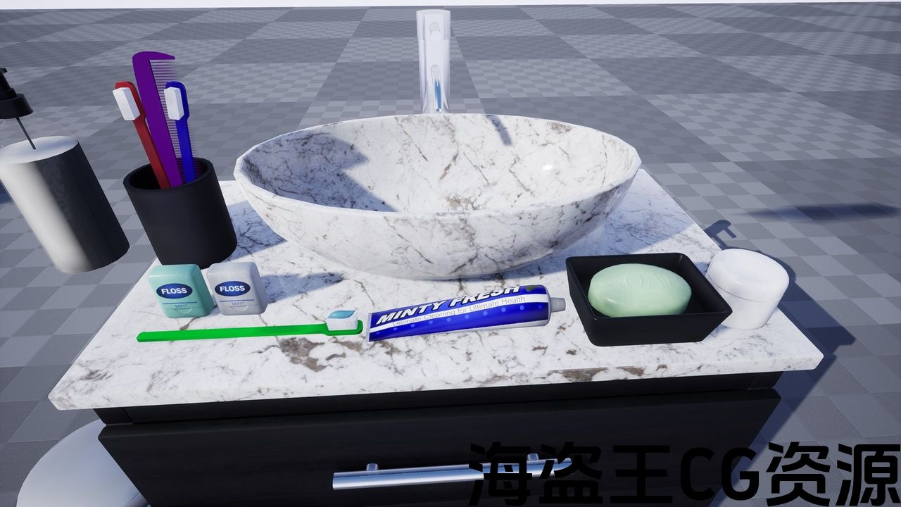 *现代厕所或浴室的逼真PBR道具集合,非常适合游戏和建筑可视化。 具有30个具有变体的独特网格: