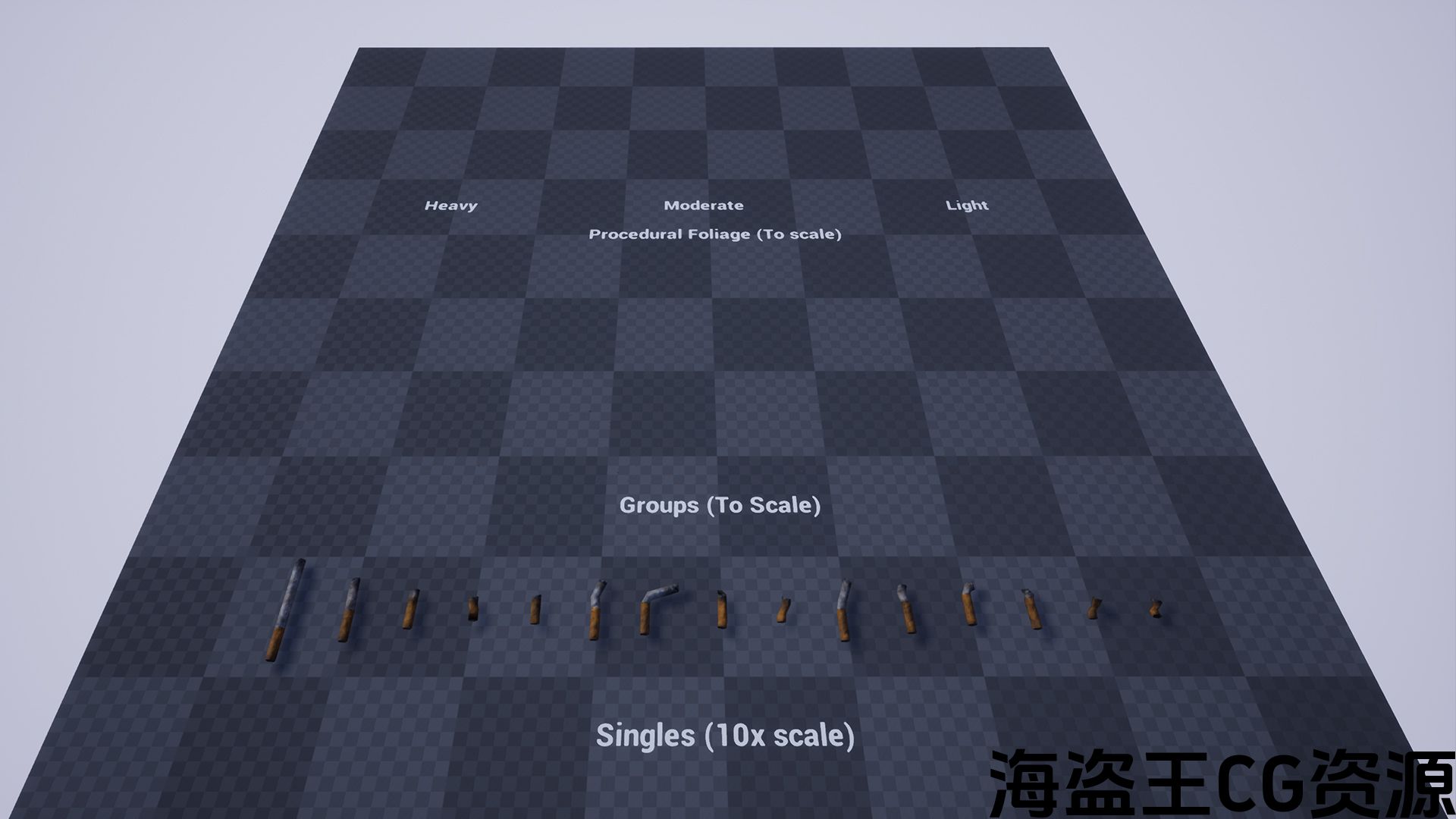 - 12个程序化植物生成器,配置为重密度、中等密度和轻密度(每种资产类型3个)