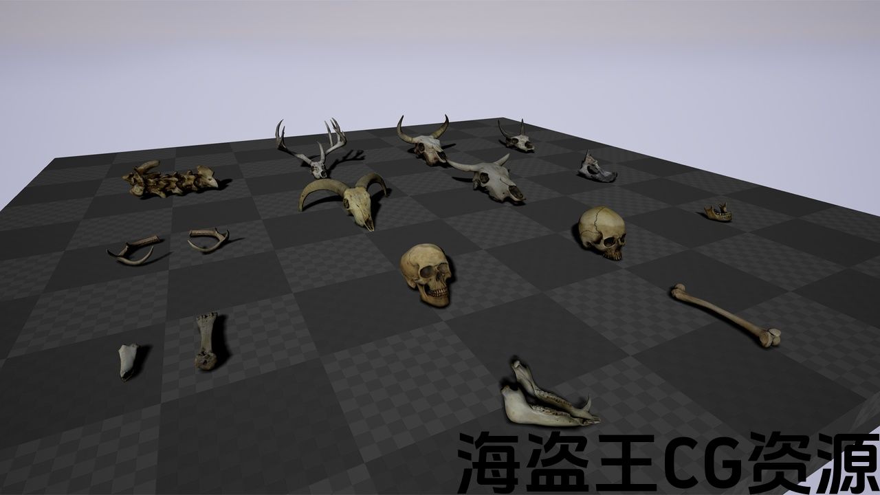 英雄在沙漠中跋涉,发现了一些来历不确定的遗骸,这些遗骸是秃鹫挑选出来的。”每场比赛都需要合适的道具来设定情绪并讲述故事。 Necro的骨骼盒包含使用摄影测量技术从真实骨骼扫描的高质量网格。 有两种牛头骨,一个nilgai羚羊头骨,一个带有华丽架子的鹿头骨,一个公羊头骨和两个人类头骨(一个带有单独的颚骨)。 还包括牛骨盆骨,牛腿骨,鹿角,牛脊柱和牛骨碎片。 这些骨头是多才多艺的! Necro的骨盒非常适合为您的恐怖游戏添加可怕的音调。 每个西方国家都需要一个牛头骨! 如果没有鹿的头骨,你正在研究的熊洞就不完整了。