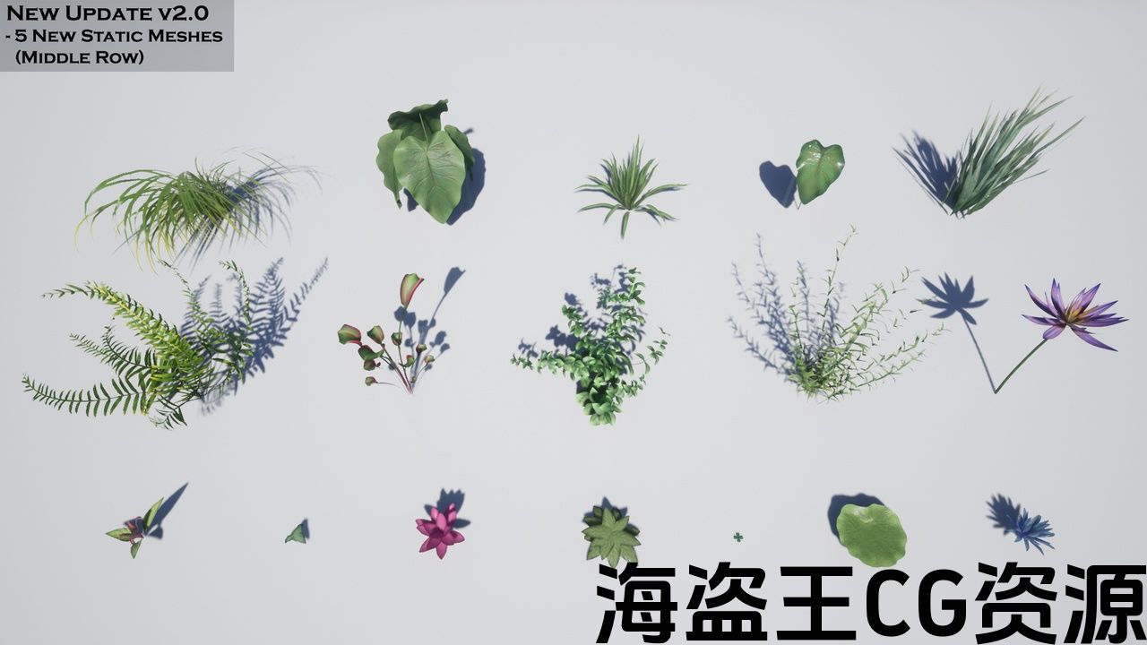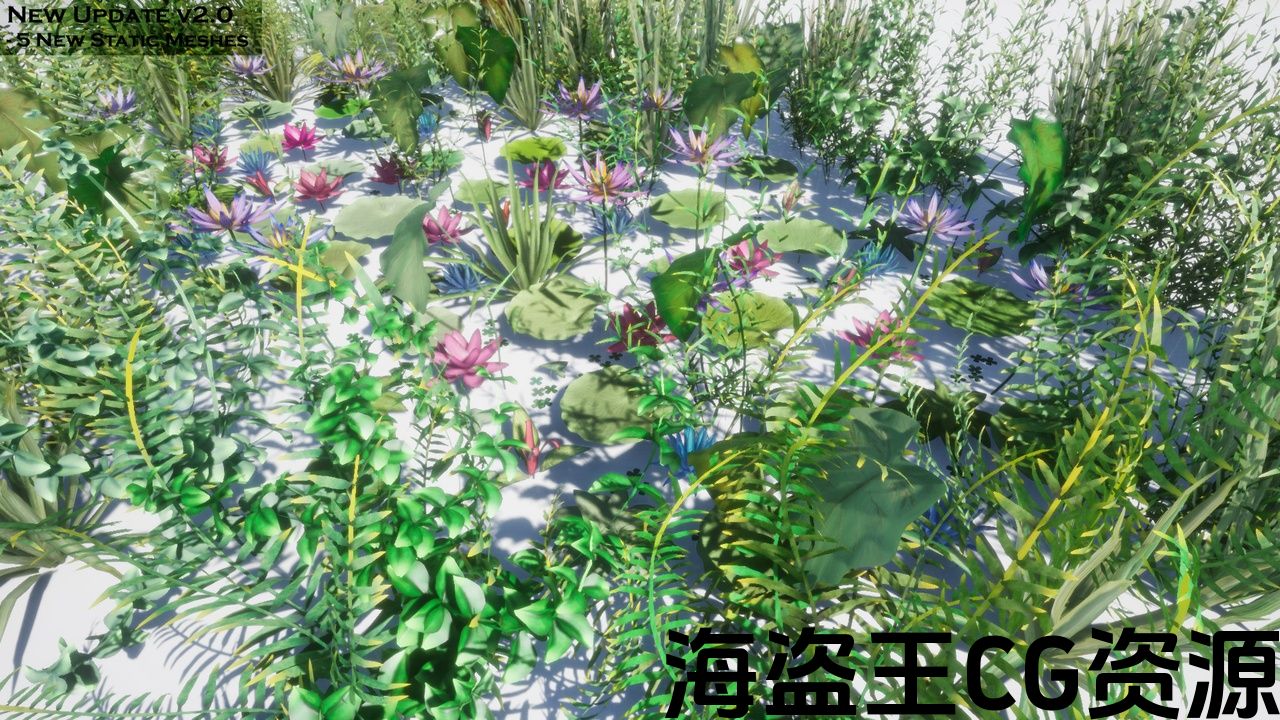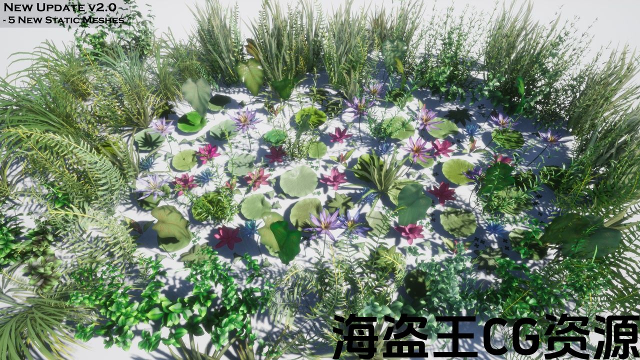 17水生植物植被网格与风格化的材料灵感来自动画电影的调色板。 完美的补充繁茂的热带环境,理想的放置在池塘,湖泊和河流周围。
