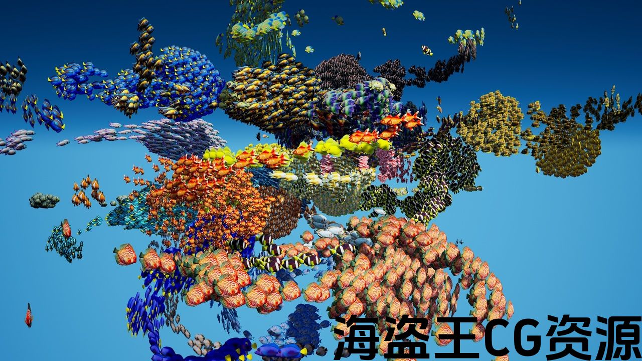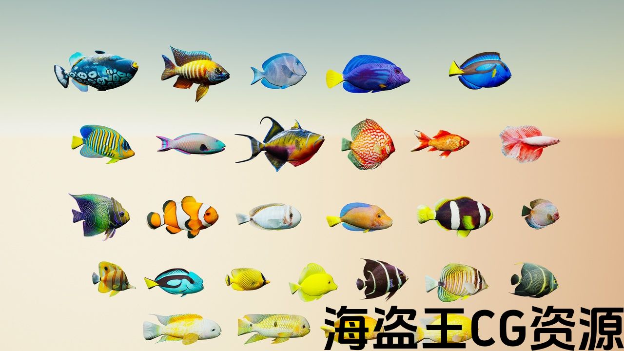 热带鱼包包含在水下环境中发现的28种不同的鱼类。 静态网格体在材质中动画化。