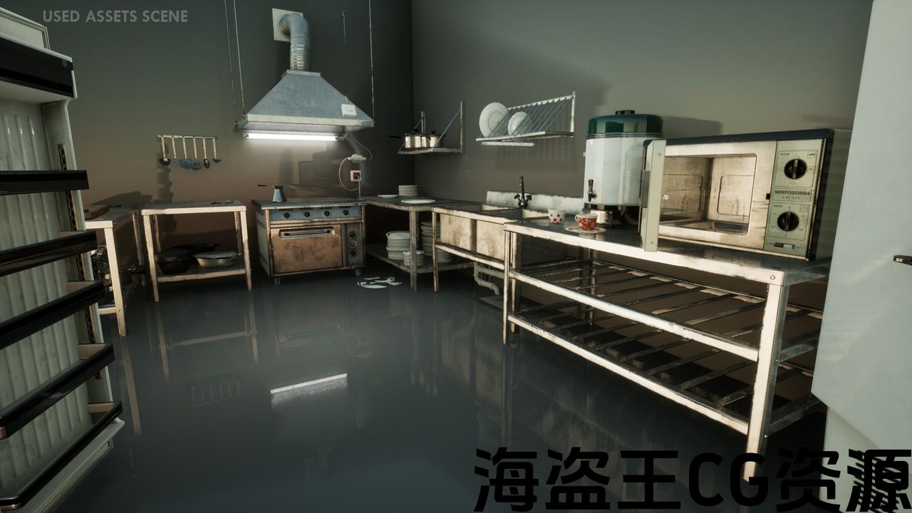 This is a pack of objects used to create a small cafe kitchen, which can also be used for a domestic or a larger commercial kitchen. New, Used, and Old (Abandoned) versions of all assets, and white/stainless steel versions of all appliances. They are based on soviet designs from the 80’s. However, any Texture with Cyrillic text or soviet designs have an English text or western design equivalent included.