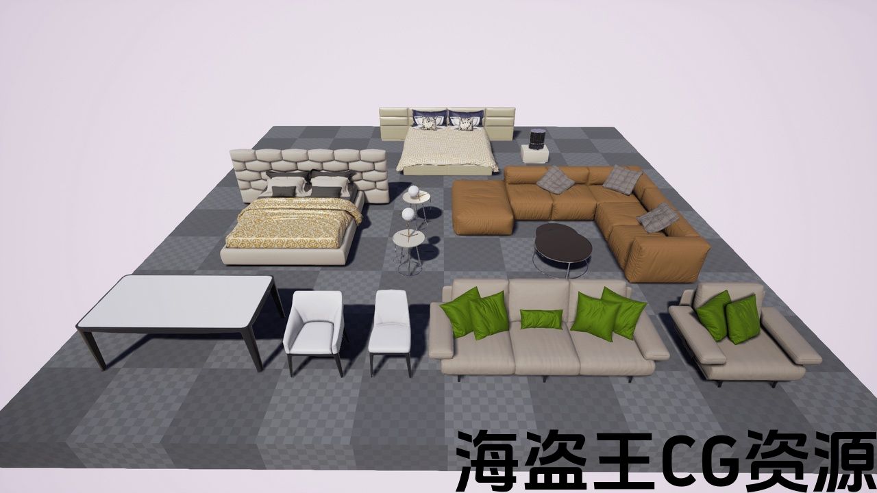这个包包含14种不同的现代风格家具的高品质模型与主材料,您可以轻松地改变颜色,细节纹理,粗糙度和金属值等。