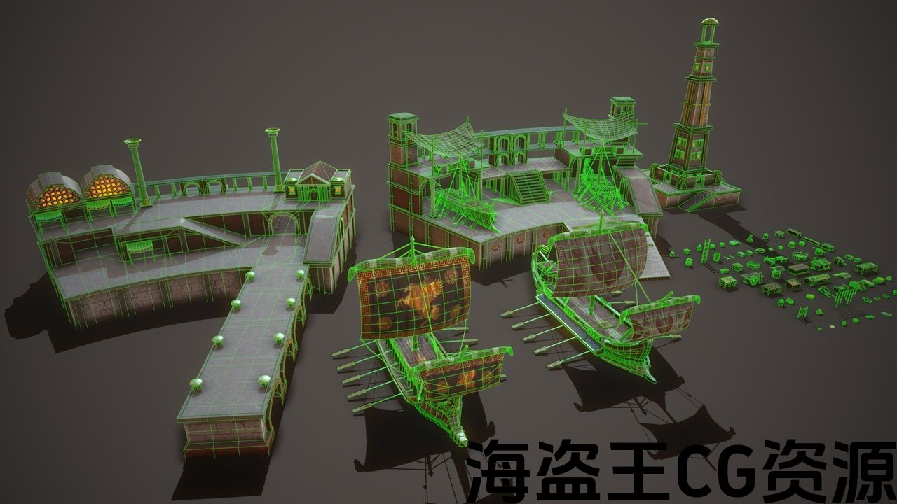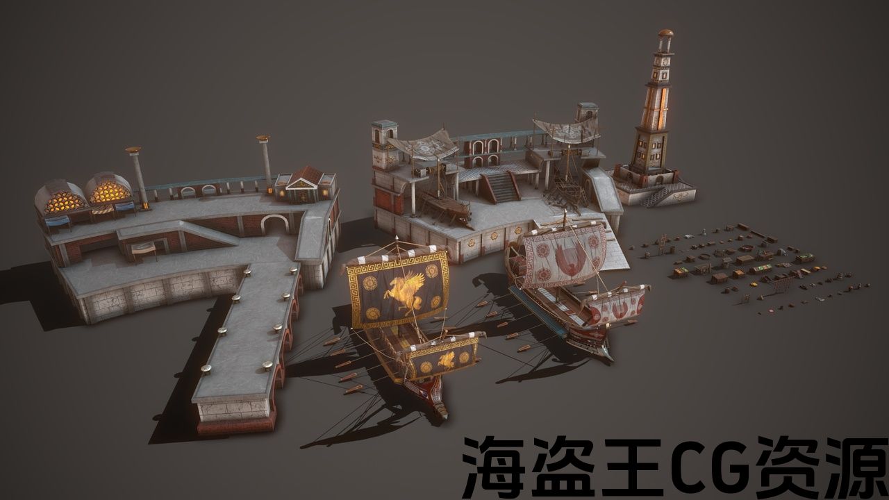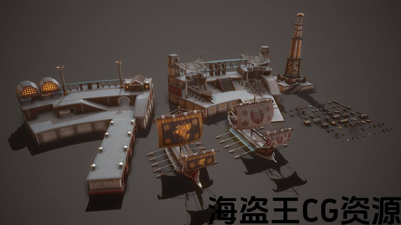 Ancient Seaport and Ship Pack is a high quality model to add more details and realism to your projects. All colors can be easily modified. Unreal engine compatible models FBX . PROFESSIONALLY MODELED Models in scene were made without ngons and to keep polycount as low as possible: WELL ORDERED Like all our products this Ancient Seaport and Ship Pack is handy to use and easy to modify. In this product there is no problem with multiplied materials and textures! There is more models of this series – explore our models set! It is suitable for game engines Quoted poly count is for triangles. Game Environment is low-poly model ideal for game engines (Game-Ready). Very High detailed Game Environment ready for professional projects.
