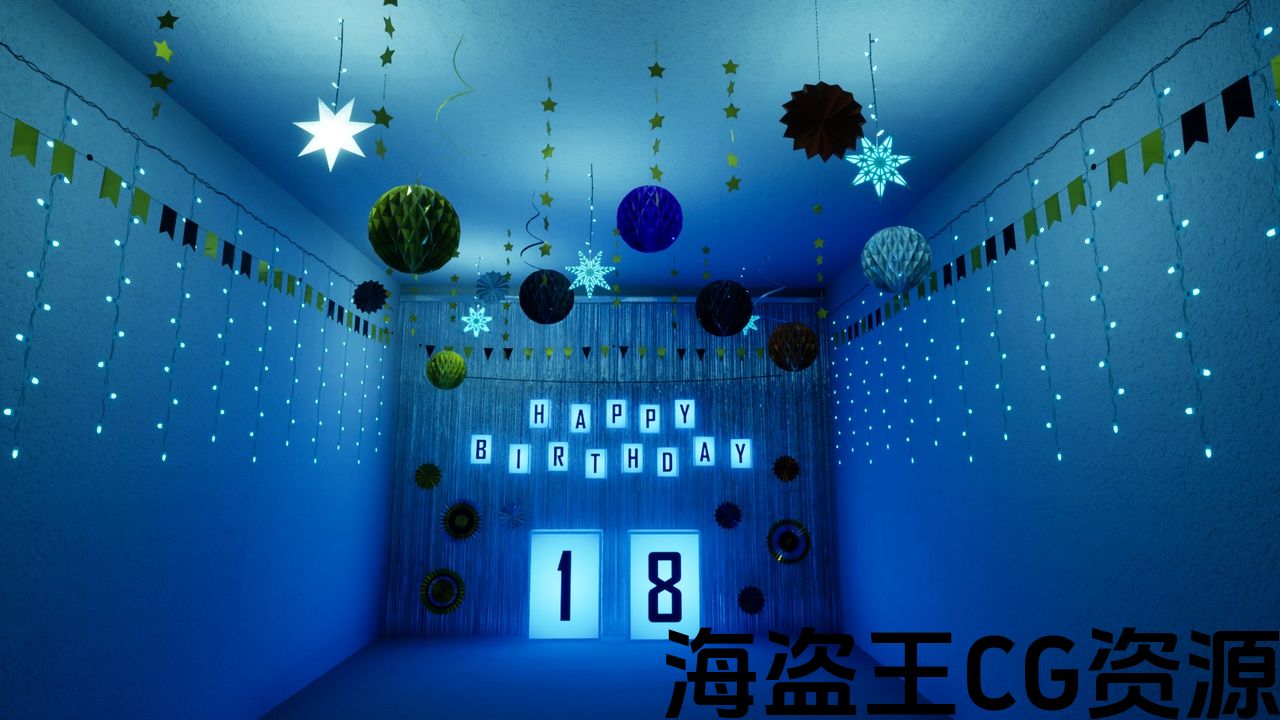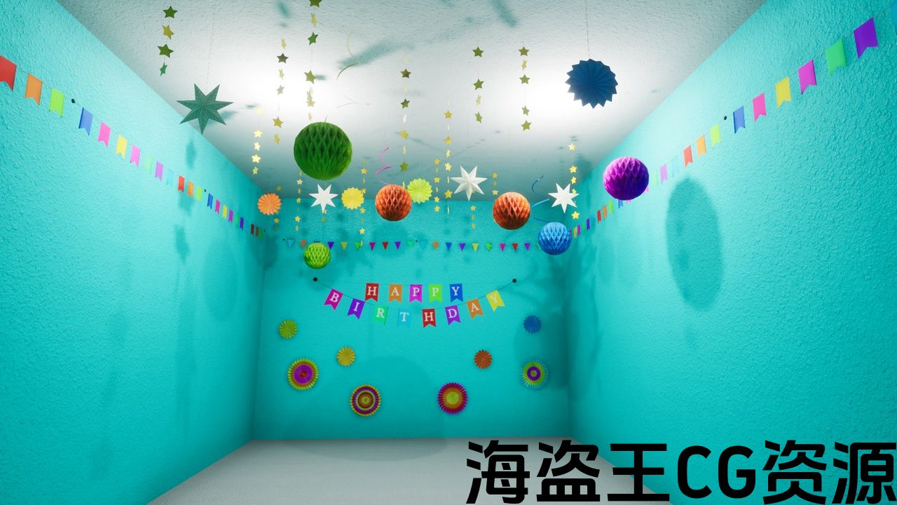 A set of indoor hangings perfect for parties and events. Includes paper hangings, banners, luminary stars, garlands, and backdrops to create the perfect celebratory environment.