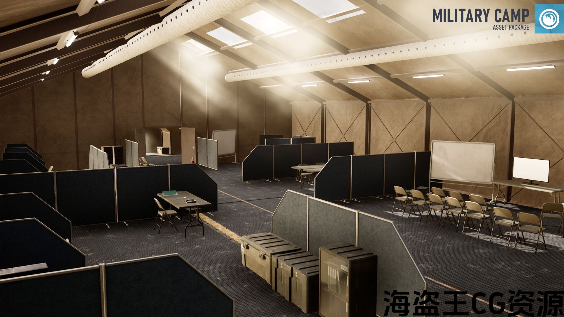 - 一系列道具,如储物架,桌椅,担架,分隔器,白板,盒子和其他道具,以填补帐篷内部。