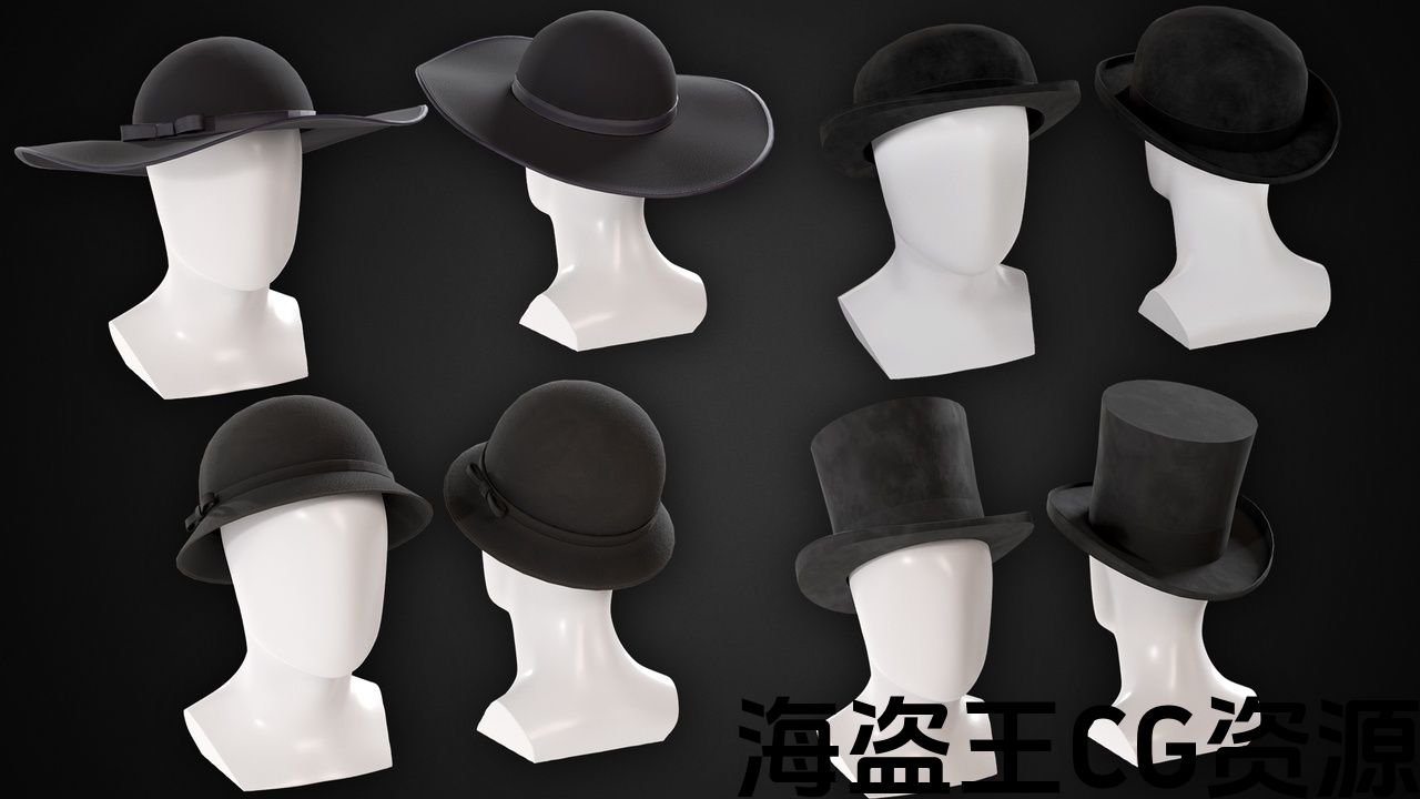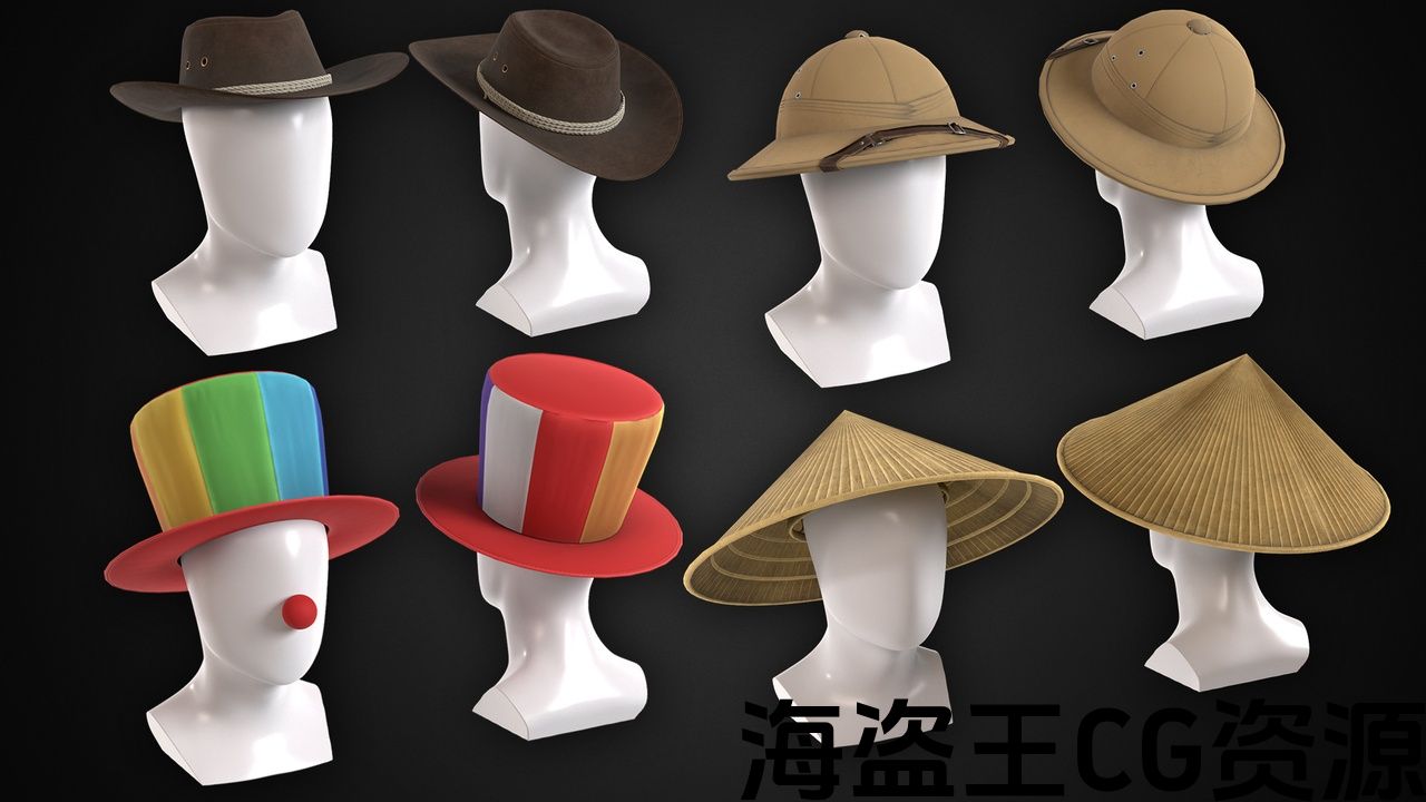 高品质的现实低聚3d模型不同的帽子为您的角色。