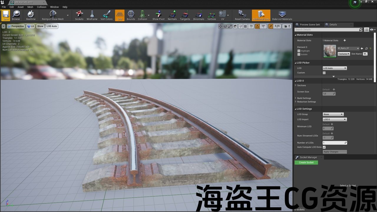 轨道与混凝土枕木。 45度旋转12220/5004/1236/536