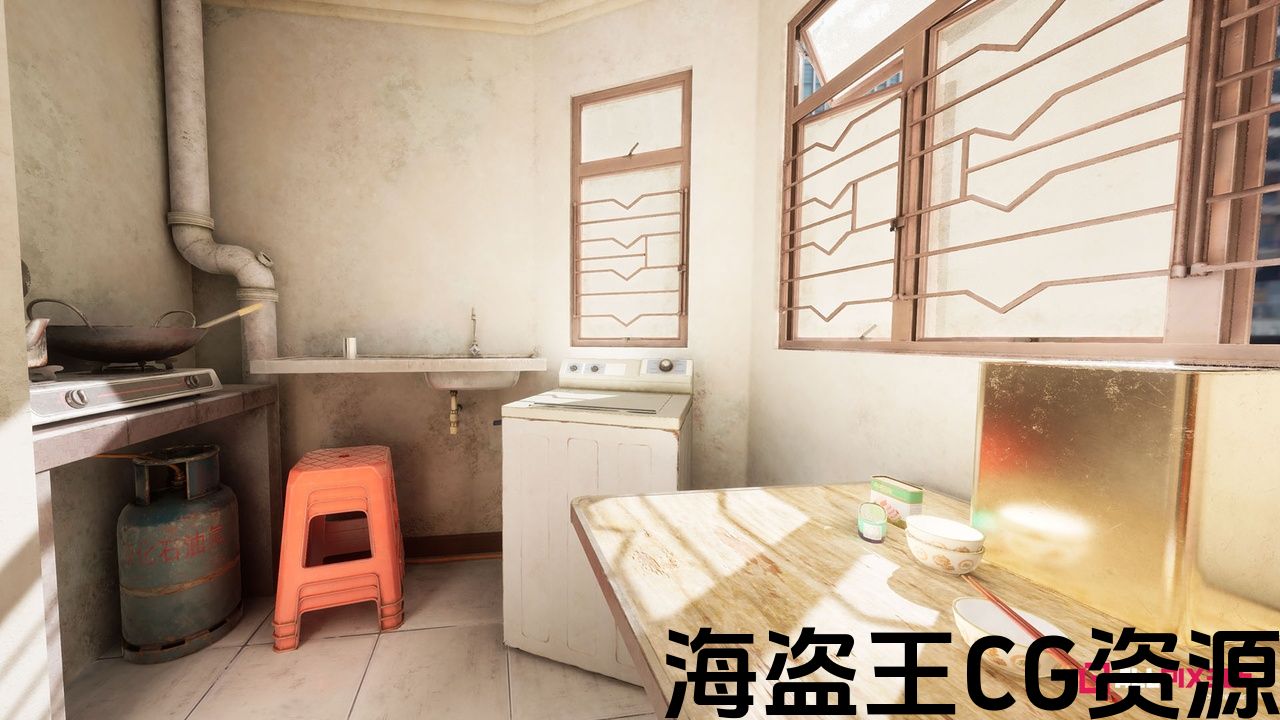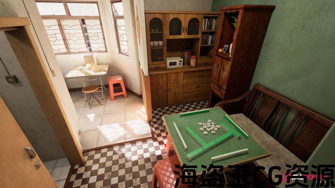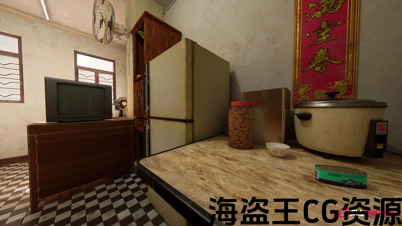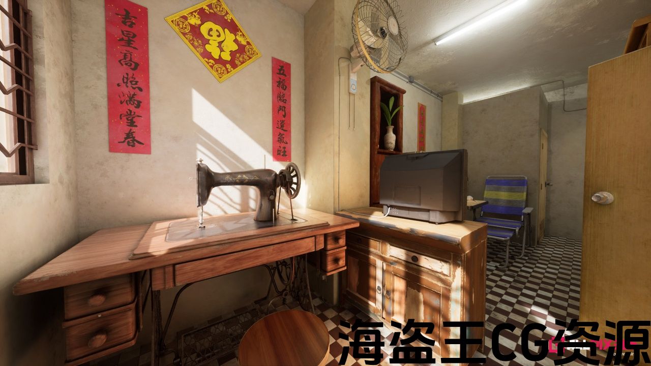 An ALL-IN-ONE pack. A collection of furniture, small props, home appliances, and interior structures to dress up the interior of an old Hong Kong apartment. These assets are game-ready and will work great in first-person games like horror, 3D adventure, or first-person shooters. It has rich visuals with high-quality materials. This pack includes interior structure pieces to construct an interior of an apartment and has a Blueprint to construct electrical wires.