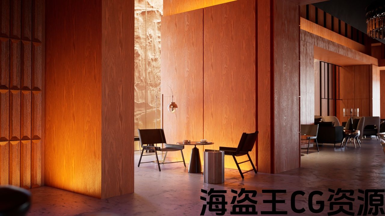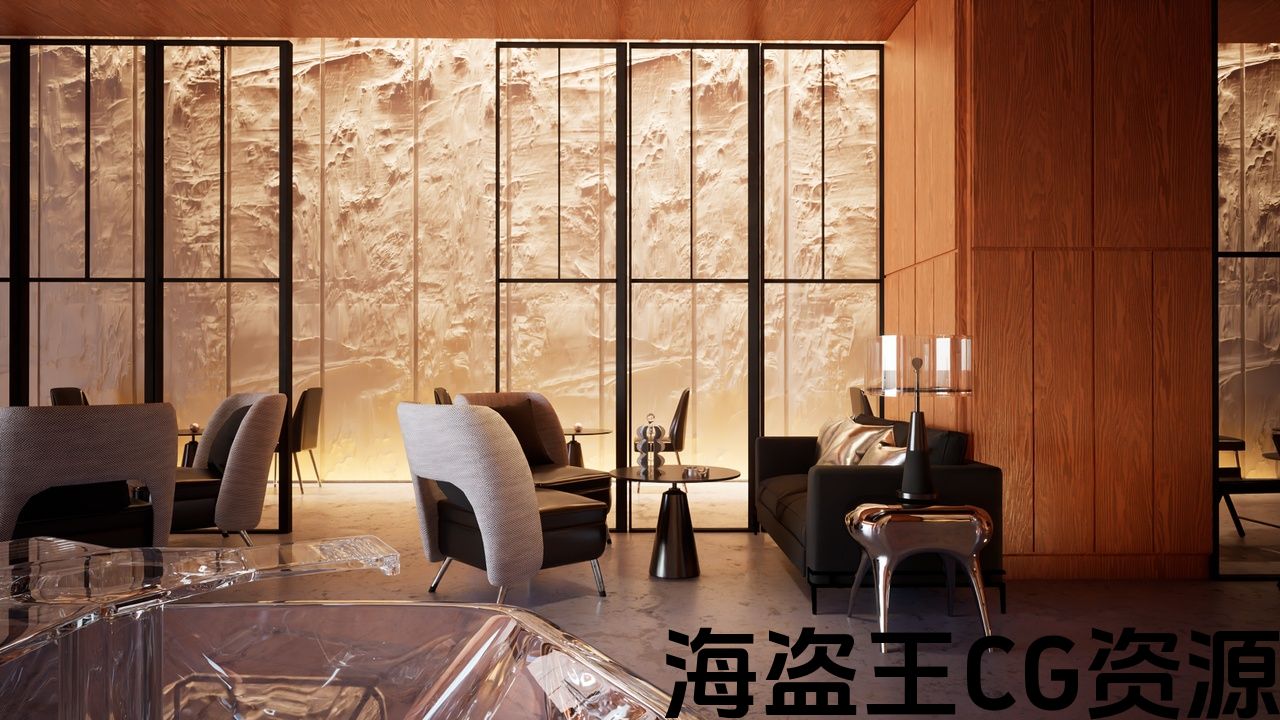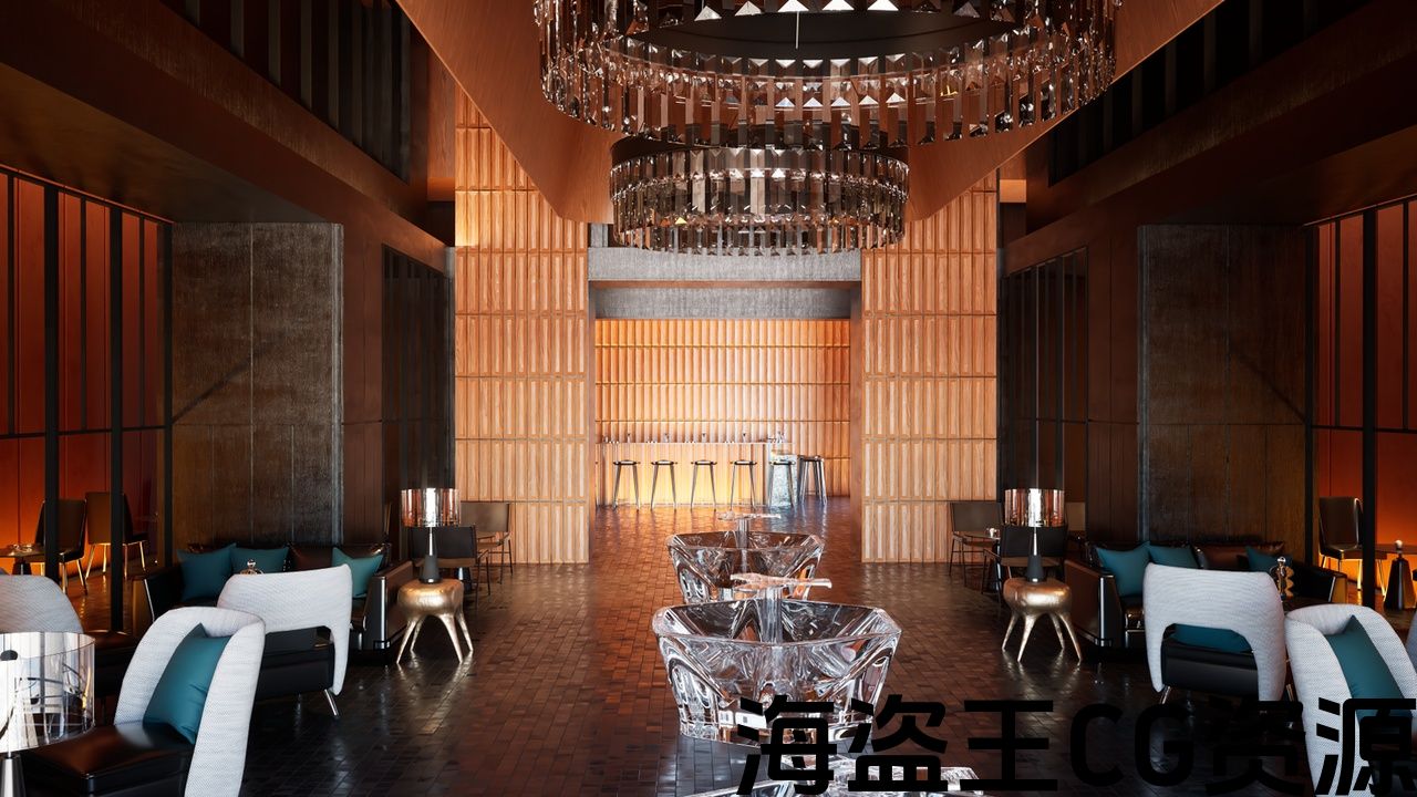A interior space of a modern hotel lobby. All furniture are ready to use in your own project.