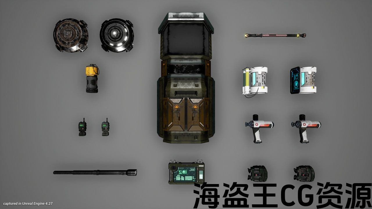 - 这个包包含在科幻或现代设置武装部队的设备。 它包括弹道防护罩,可扩展的眩晕警棍,地雷,手榴弹,多用途平板电脑,双筒望远镜,移动无线电装置,带显示器或注射附件的战斗医疗护腕,医疗hypospray和带可扩展