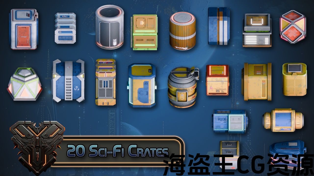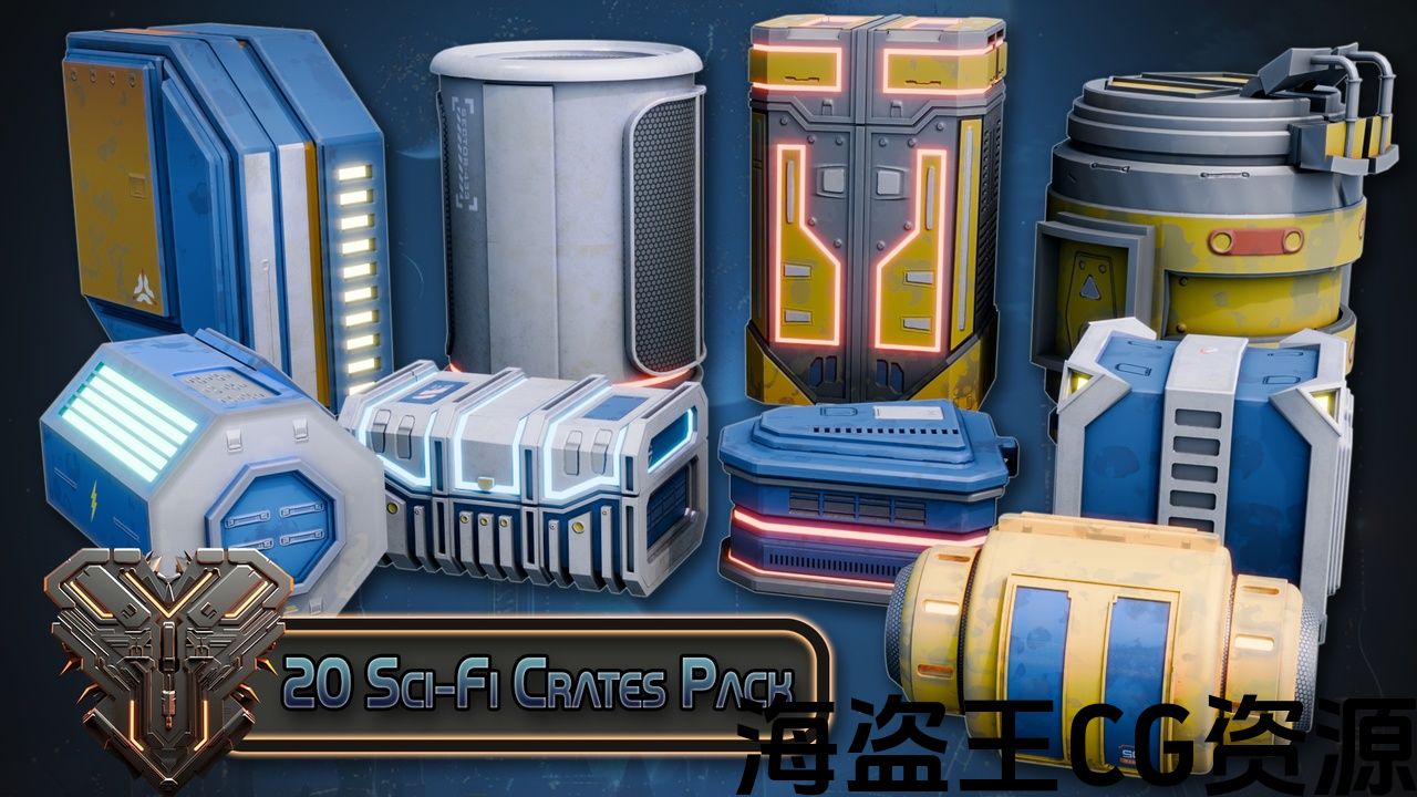 In this collaboration between Azure Moon Games & 3D Tudor, we bring you a collection of 20 stylized sci-fi crates ready to drop into your levels! Perfect for use as loot boxes or storage chests. This collection features a wide variety of striking looks and styles, ensuring no 2 crates look like minor edits of one another; each crate boasts a unique style and feel!