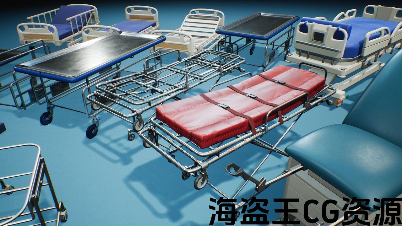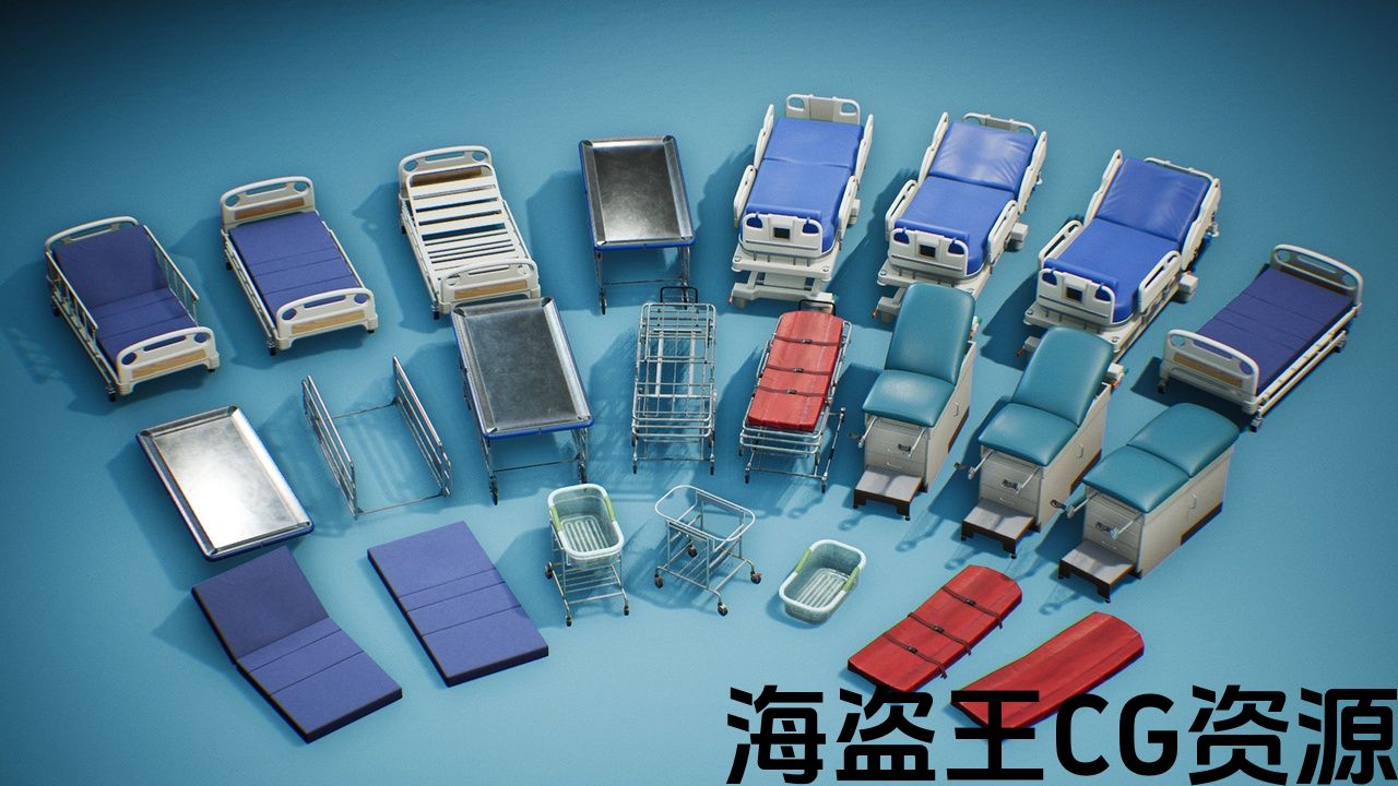 包括多个医院类型的床和轮床,所有与多个部分或单个简单的静态网格。