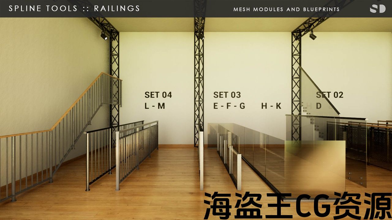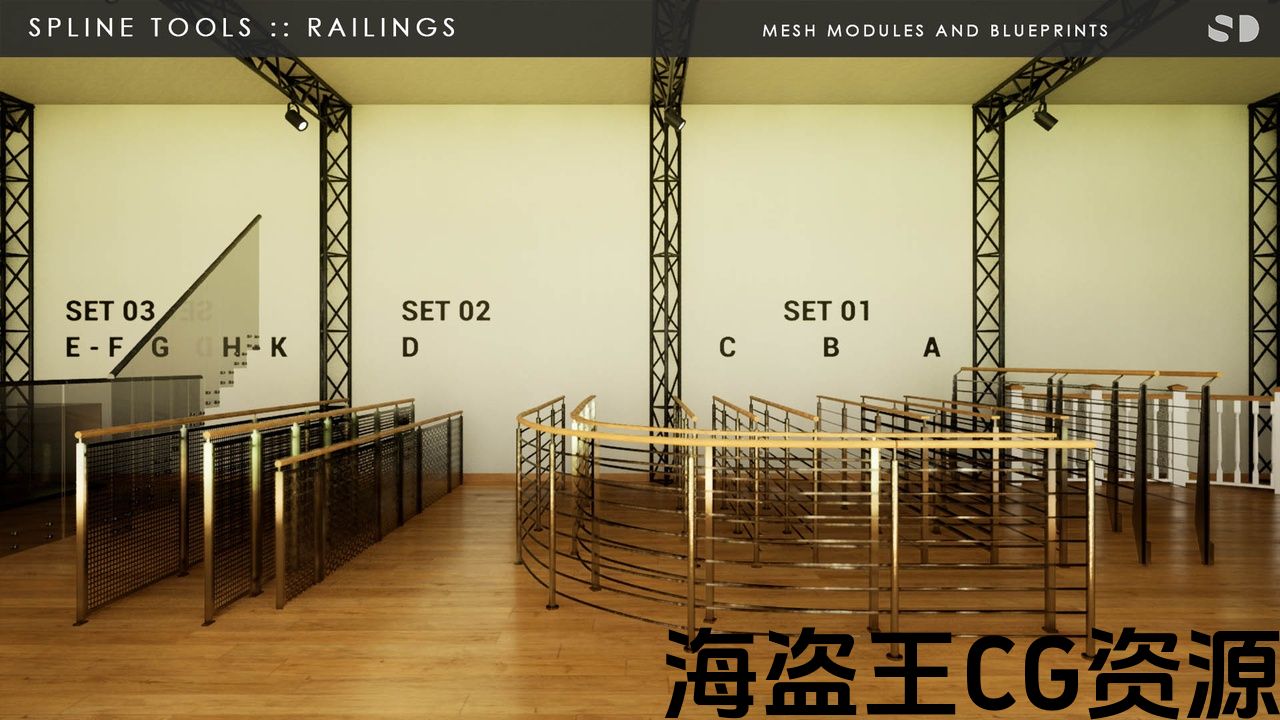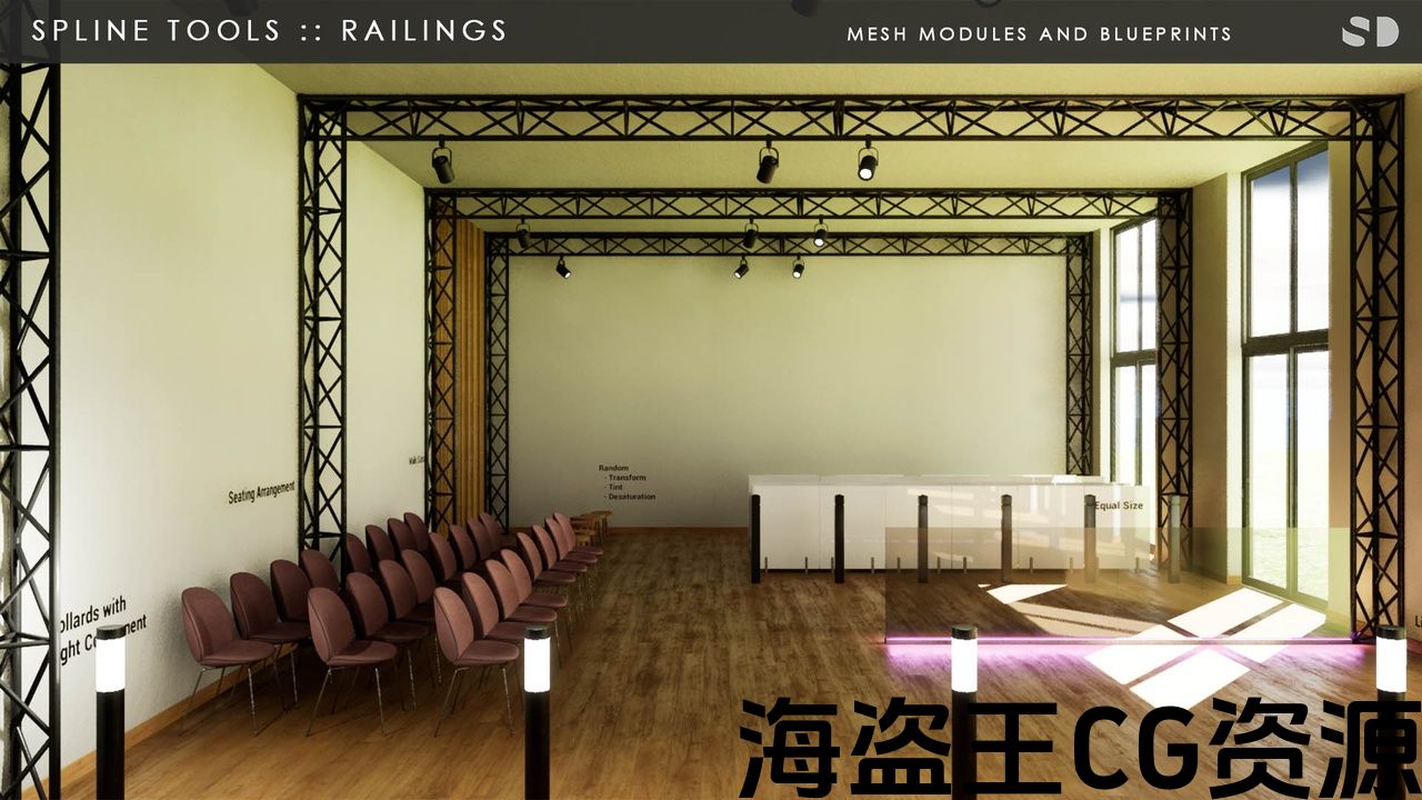 样条工具 :: 栏杆 对于虚幻5包含模块化栏杆和围栏网格。 蓝图为每个栏杆类型组装。 该 样条工具蓝图库 包含用于创建蓝图的节点或函数。 节点可以在任何其他蓝图中使用。