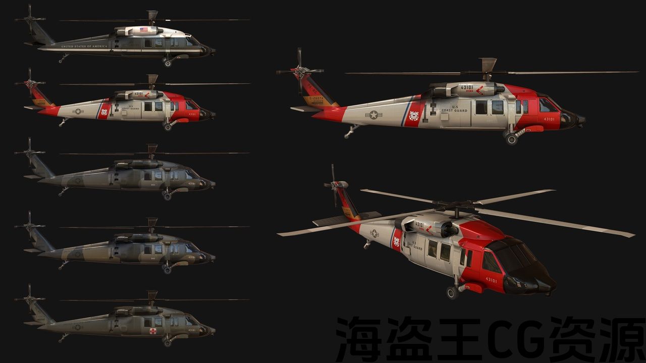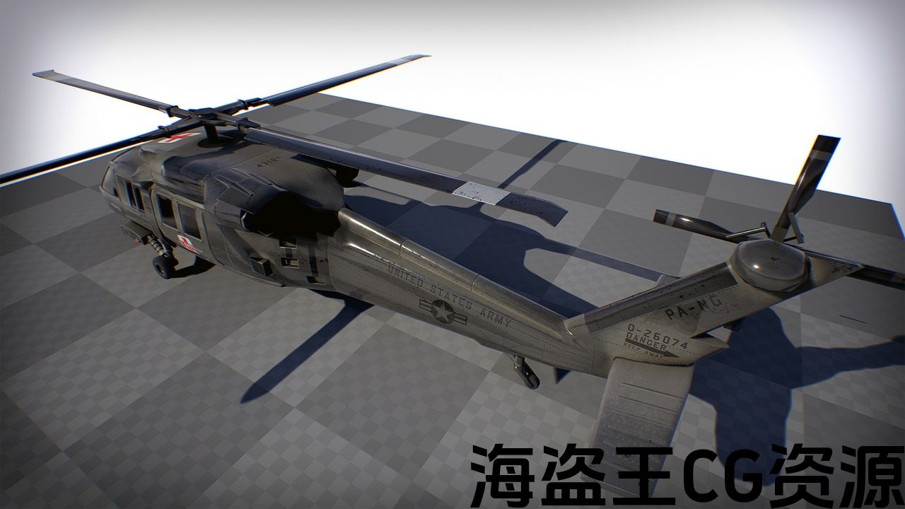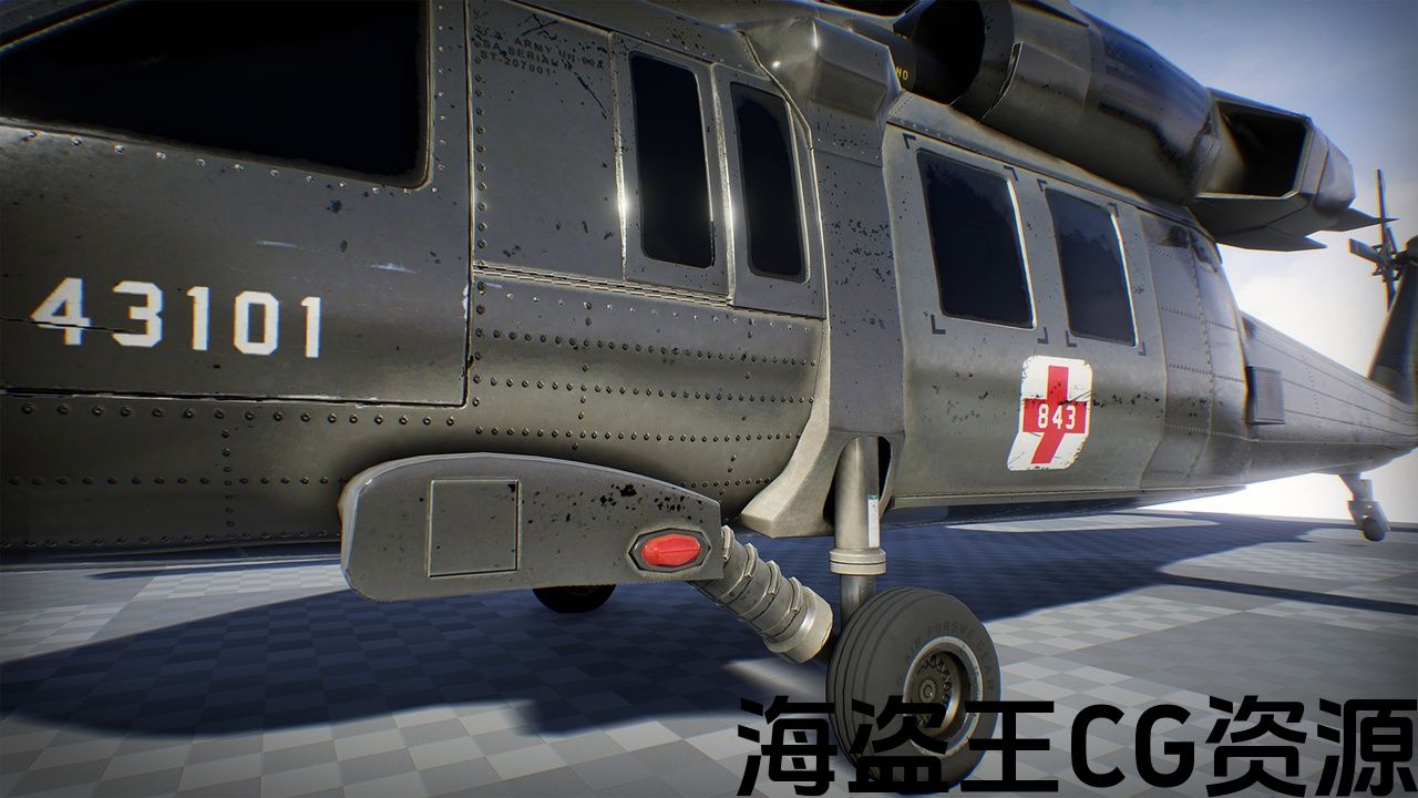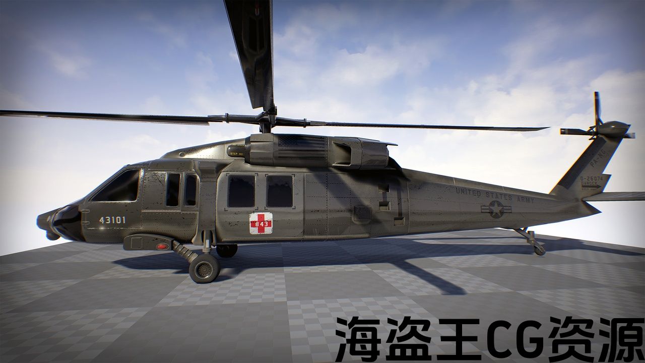 This pack includes model of helicopter UH-60M Blackhawk rigged and animated, PBR textures, 5 different skins (green camouflage, desert camouflage, presidential, rescue, medical,) and material. Blueprints for the basic movements up, down, left, and right turns, around the axis. Also Blueprints for takeoff and landing. Blueprints for camera spectator. To control the model use buttons W,A,S,D and mouse.