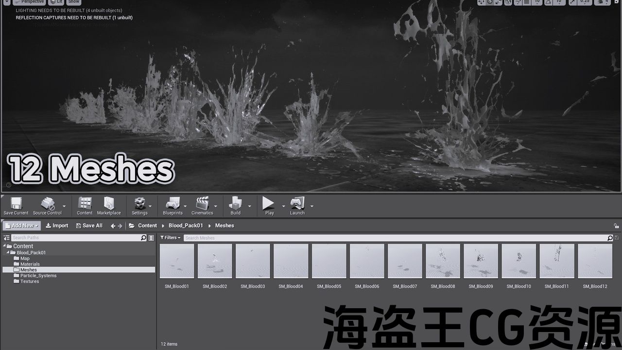 网格/网格 -“SM_Blood01″至”SM_Blood12”