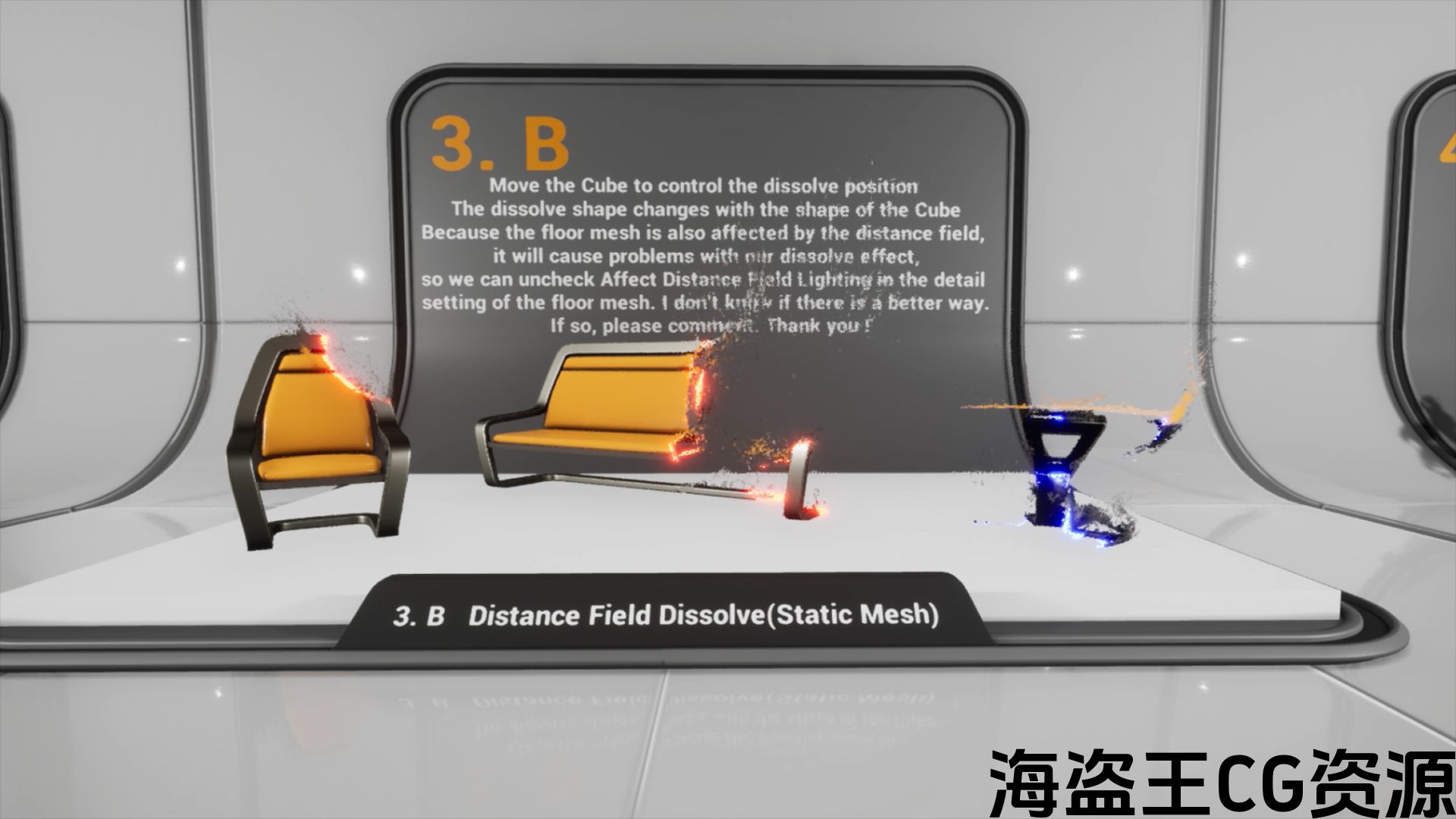 骨架网格体和静态网格体溶解效果由Niagara和材质实例参数控制,包括随机噪声溶解、不同方向梯度溶解、使用距离场控制开始位置和形状溶解以及一个简单 祝你喜欢!