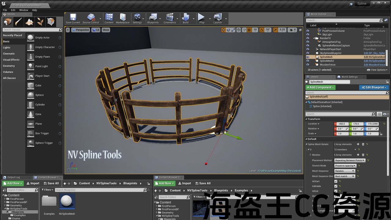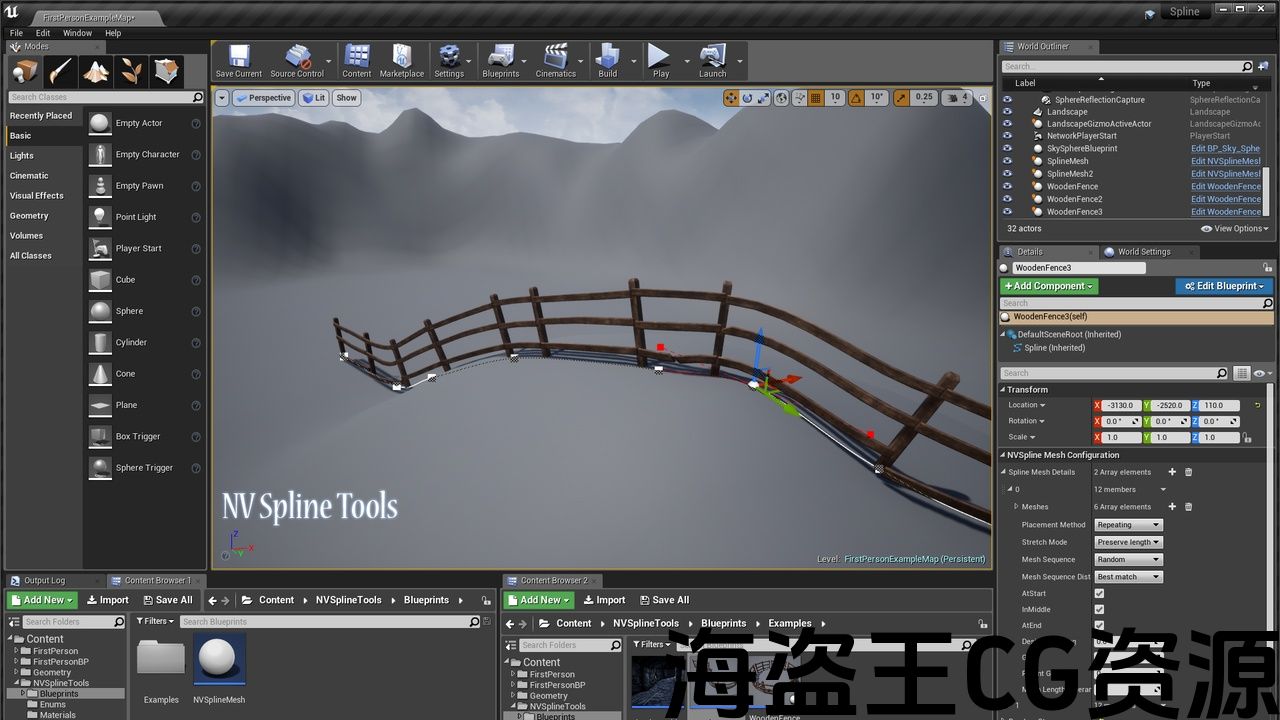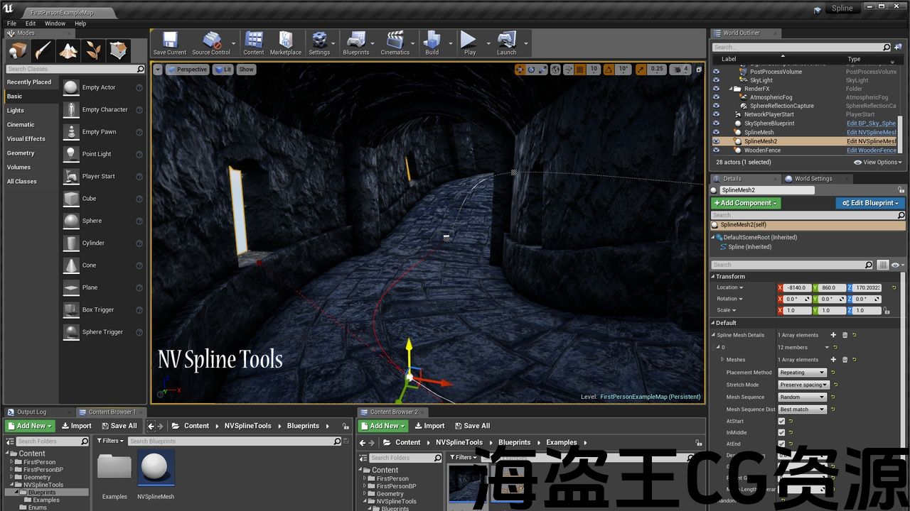 沿着样条放置静态网格体: