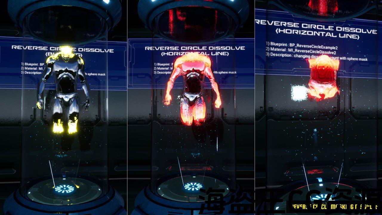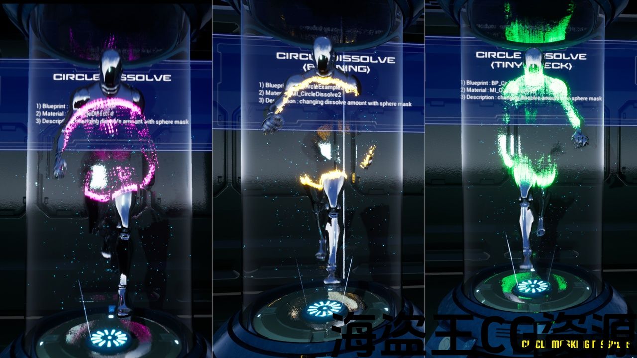 - 34+ Dissolve materials and material instance (circle masking, reverse circle masking, glitch, scattering, universal, vertical, warp)