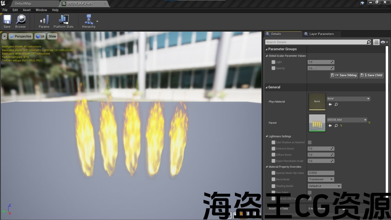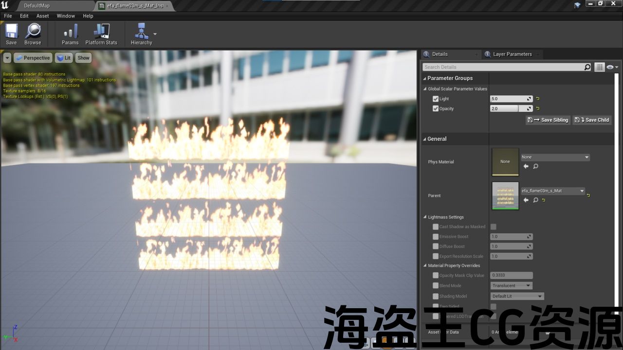 特点:通过简单的设置,您可以调整火焰材料的基本光线和不透明度。