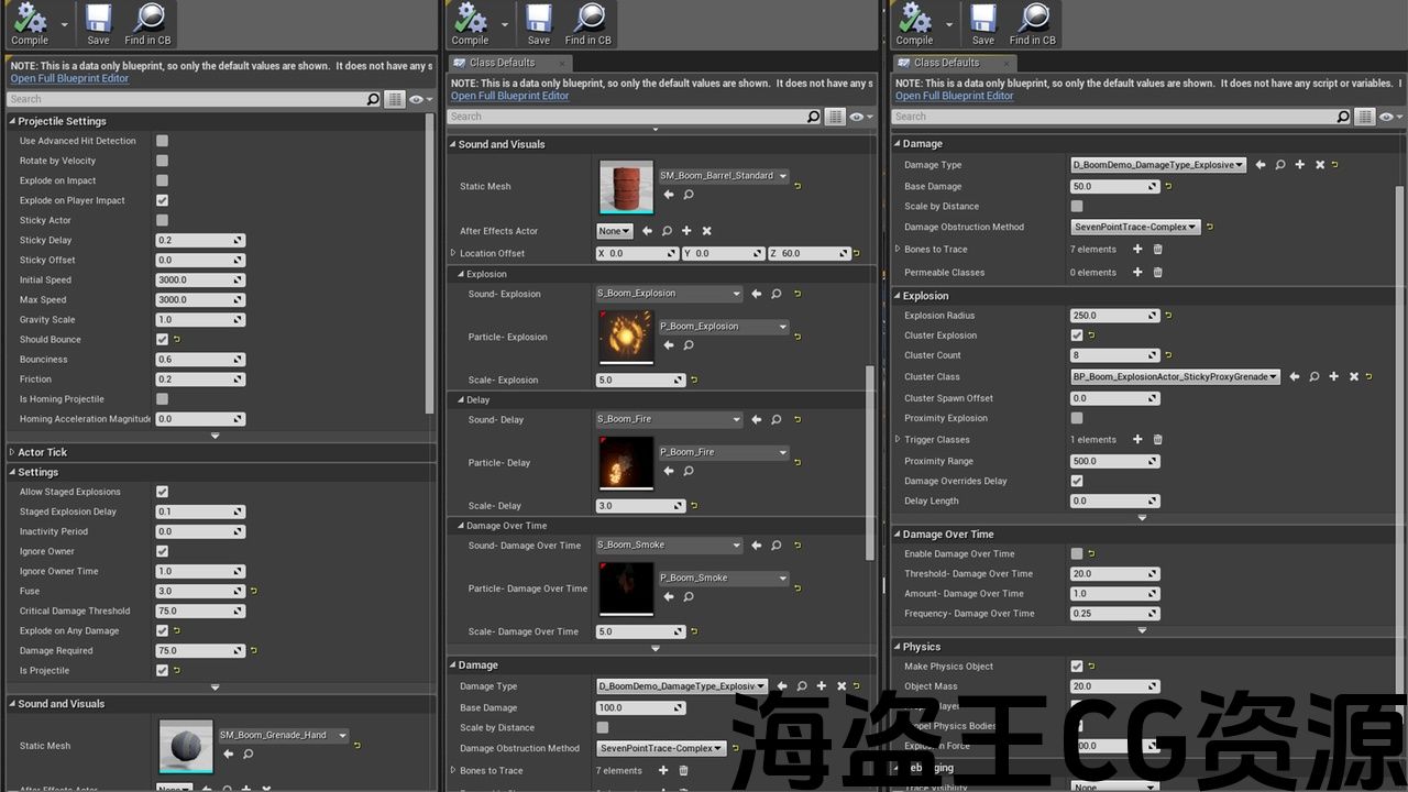 List of Features: Explosion actors with settings for damage, how damage is applied, how damage is parsed, slow damage over time effects, visual cues for state of actor/explosion, sound cues for state of actor/explosion, proximity triggers, sticky actors, timed explosions, explosion after effects, physics interaction with explosions and explosive actors, cluster explosions, and much more.