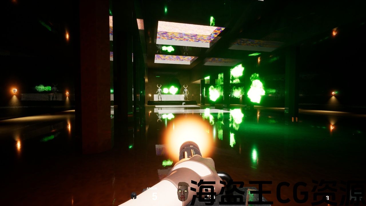 Level assets: Monsters spawning pentagrams, Doors, Switches, Objects moving blueprint, Secret area, Monsters, items, secrets count on level clear, Exploding barrels