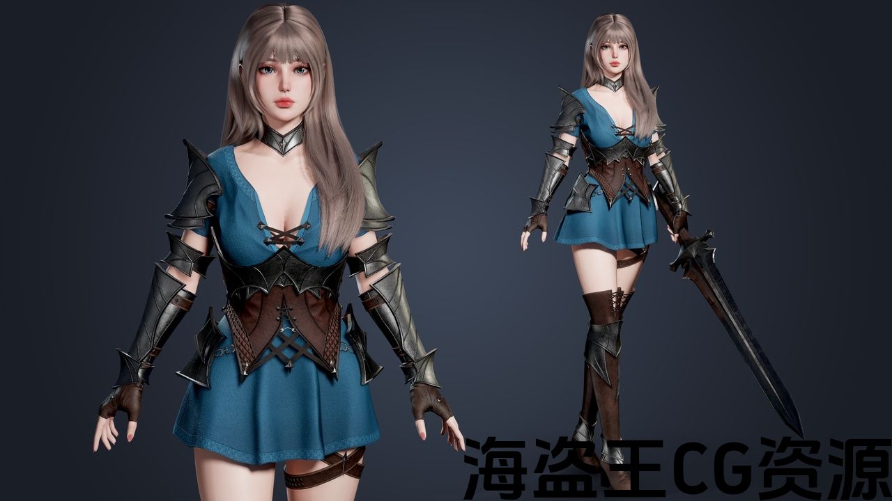 纹理分辨率:4k纹理:4k身体,4k头部,4k头发,2k眼睛,1k睫毛,4k盔甲,4k衣服,2k剑。